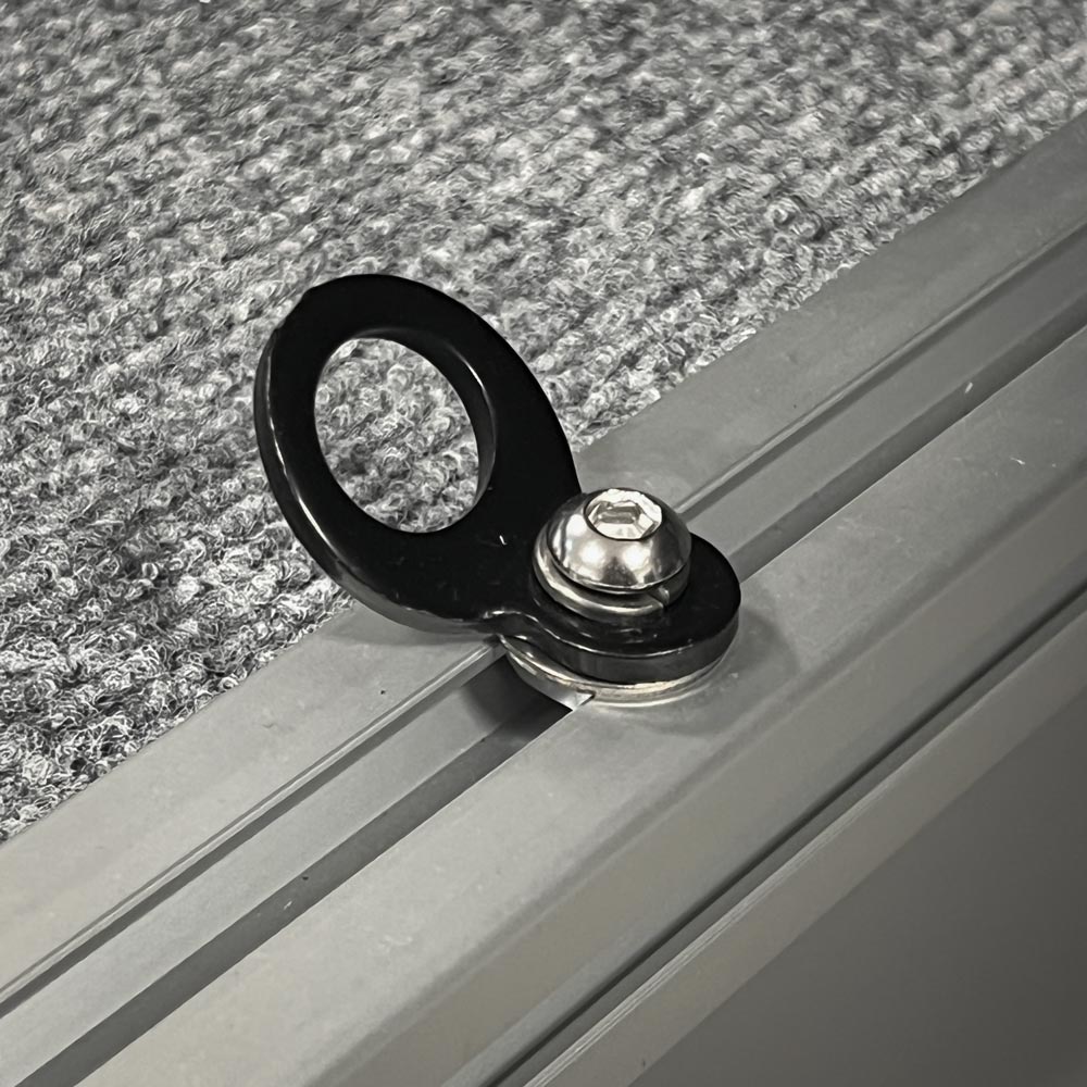Each kit comes with four hooks, four 12mm bolts, four 20mm bolts, washers, four alu-profiles nuts (type B, size 8) and four pronged t-nuts.