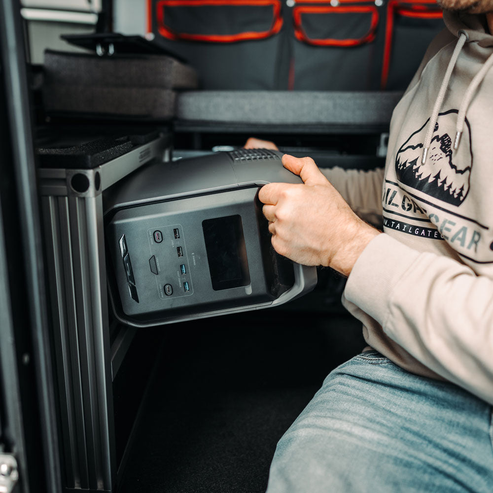 We have measured and sized several of our modules to accomodate Ecoflow and Bluetti batteries. Besides portable batteries, several AGM and Lithium batteries can find their place inside our solutions.