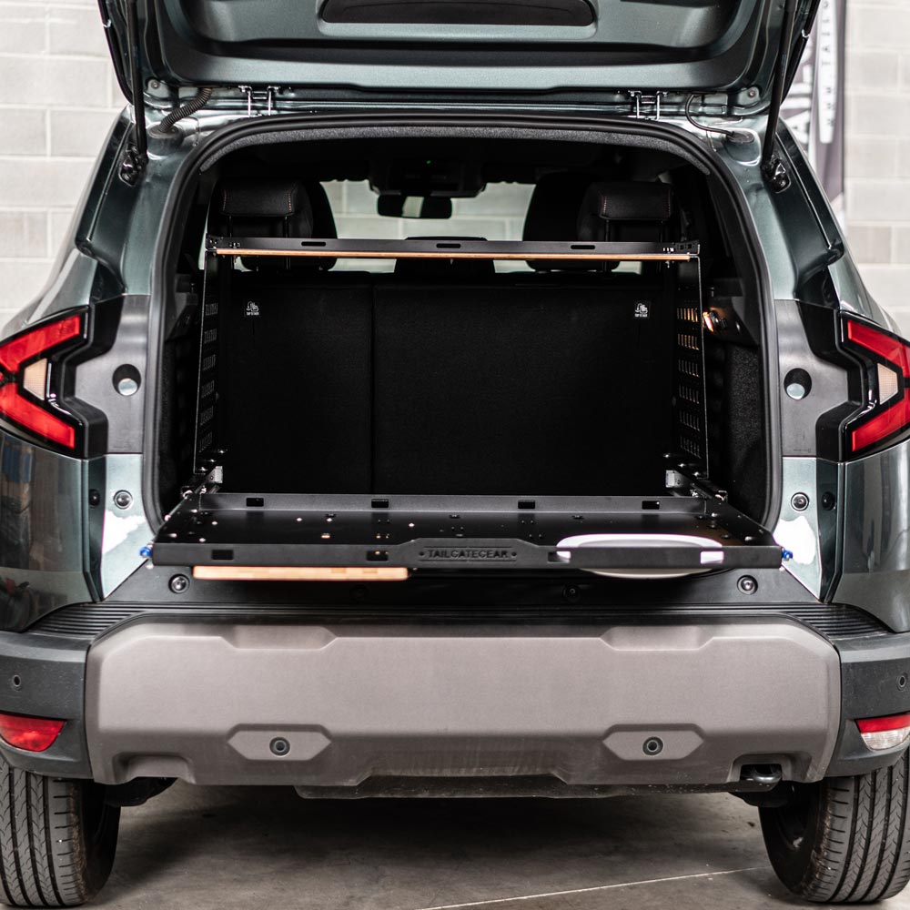 We provide a set of lift bars to make sure the Slide is high enough to be open and come of from the trunk. For example, the Jeep Compass 4XE needs a one side lift bar set to level the Cargo Slide. The new Hybrid Dacia Duster has a deep trunk which requires lift bars on both sides of the Cargo Slide but offers a lot of storage space.